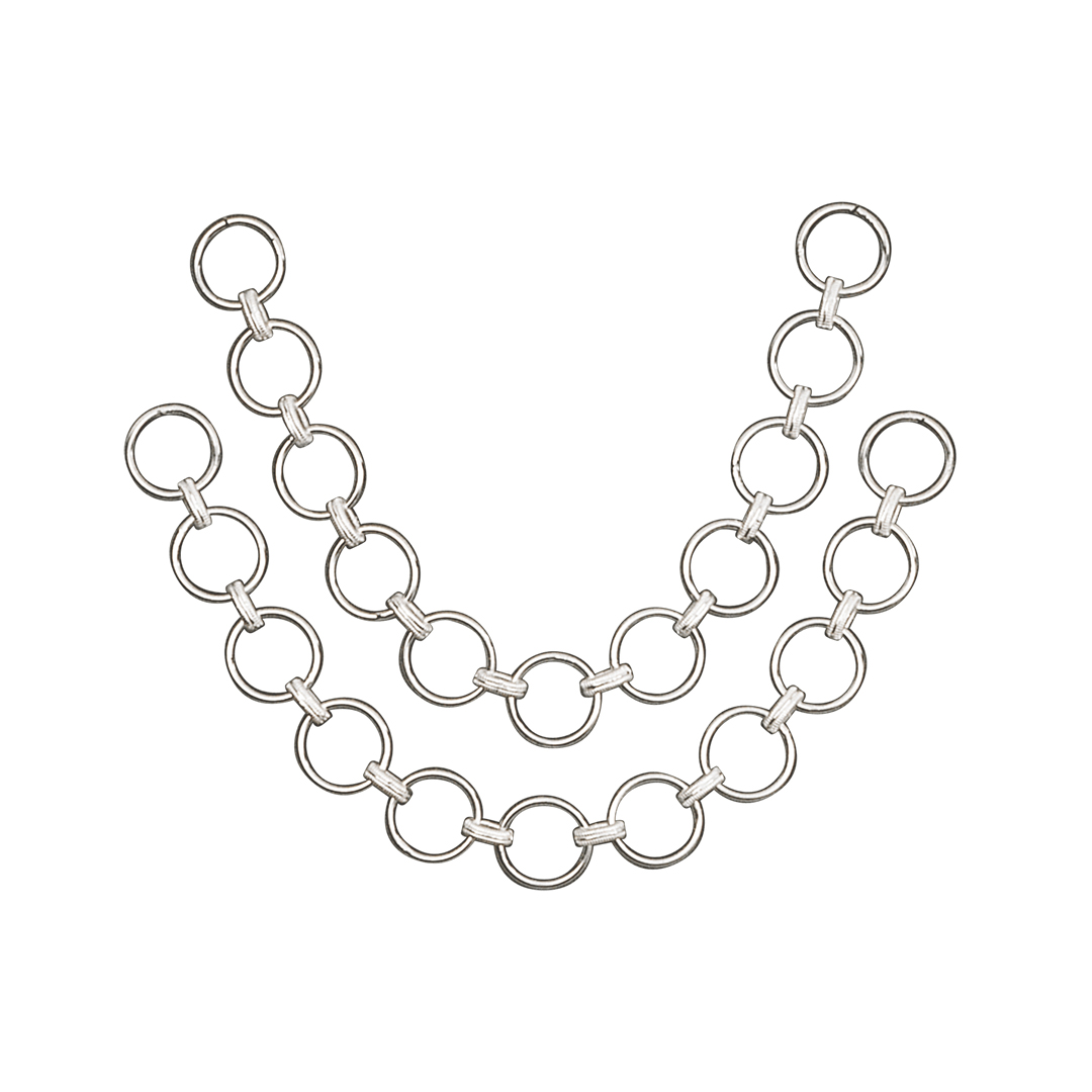 Flott maljebånd med 11 ringer i 830 hvitt sølv. Maljebåndet syes fast på vesten, og snørebåndet skal tres igjennom som en skolissse. Dermed får man festet vesten, og strammet inn og løftet opp. Bunaden er ikke komplett uten dette flotte maljebåndet.